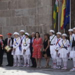 La misma llegó puntual a las 11.30 horas de este viernes con unos stilettos de vértigo al empedrado patio del bonito Monasterio y tras asistir al cierre del seminario, pudo presenciar unos bailes populares riojanos interpretados por el Grupo de Danzas de San Millán, con música en directo con los gaiteros. Cuando concluyeron, la reina se acercó para hablar con ellos.